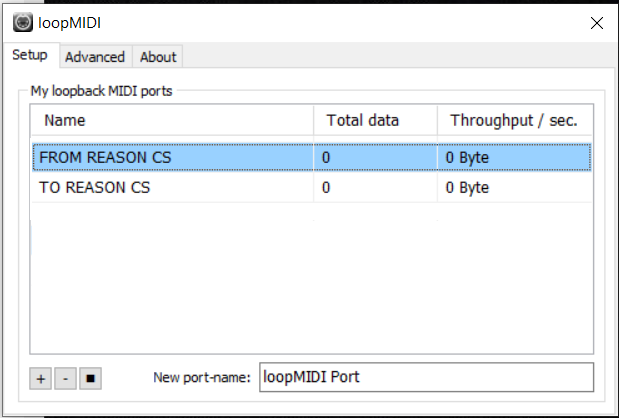 After you install loopMIDI, open loopMIDI and add a port, name it "FROM REASON CS",