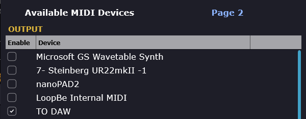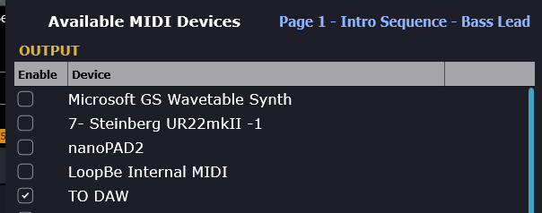 Select this port in the MIDI out of the sequencer pages you want to use. Then select the MIDI channel to send MIDI output.
